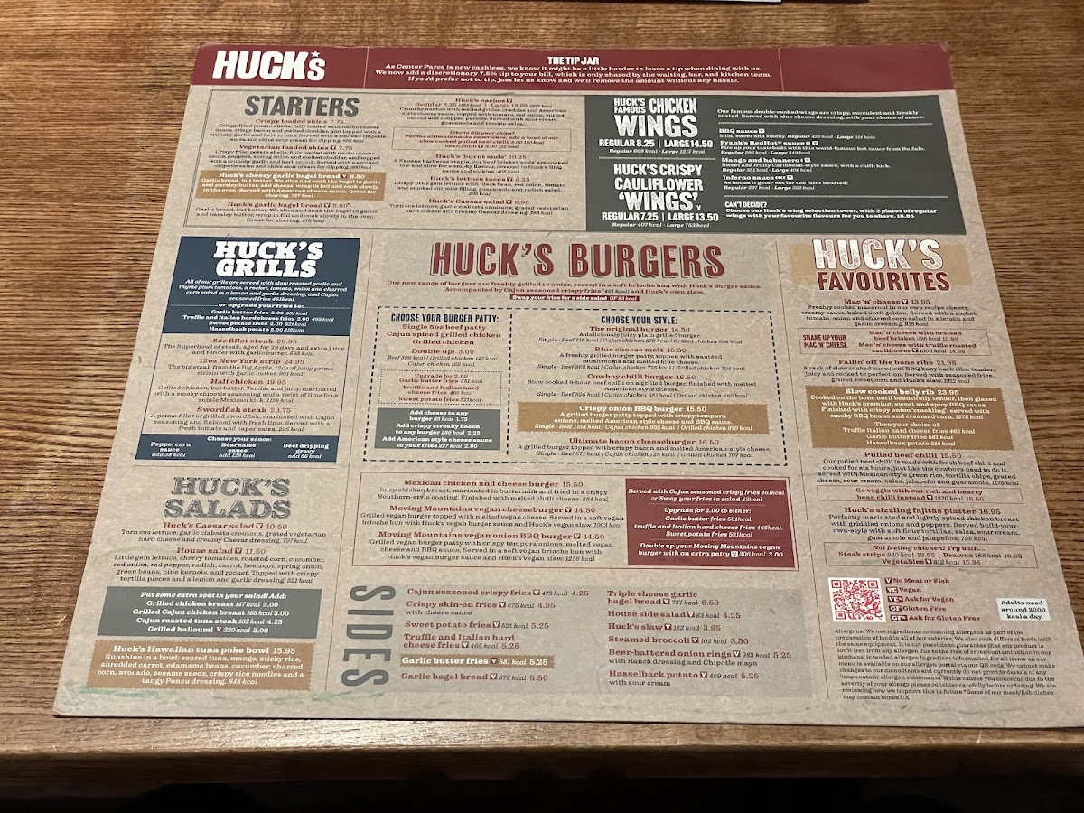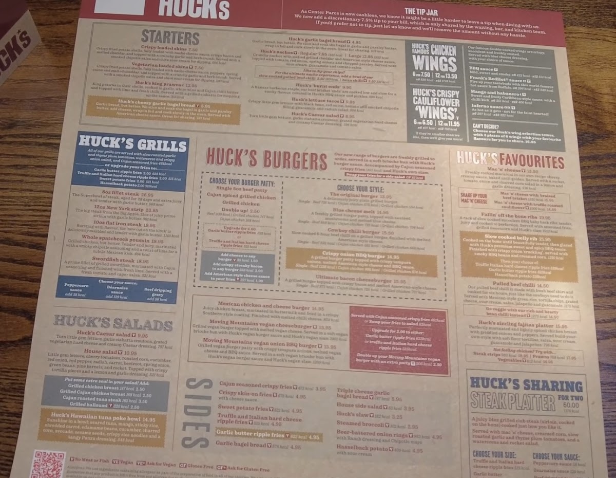The menu at Huck’s offers a relaxed and approachable selection of American-style dishes and drinks, perfect for casual dining during a day out at Center Parcs Woburn Forest. Whether you’re settling in for a hearty meal after exploring the park or gathering with friends and family for a laid-back evening, the food and beverages complement the welcoming and lively atmosphere.