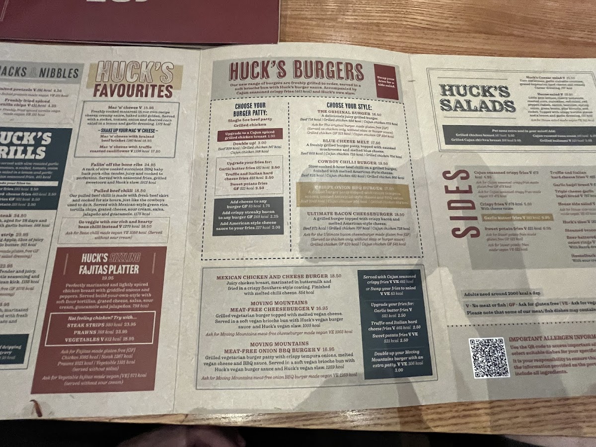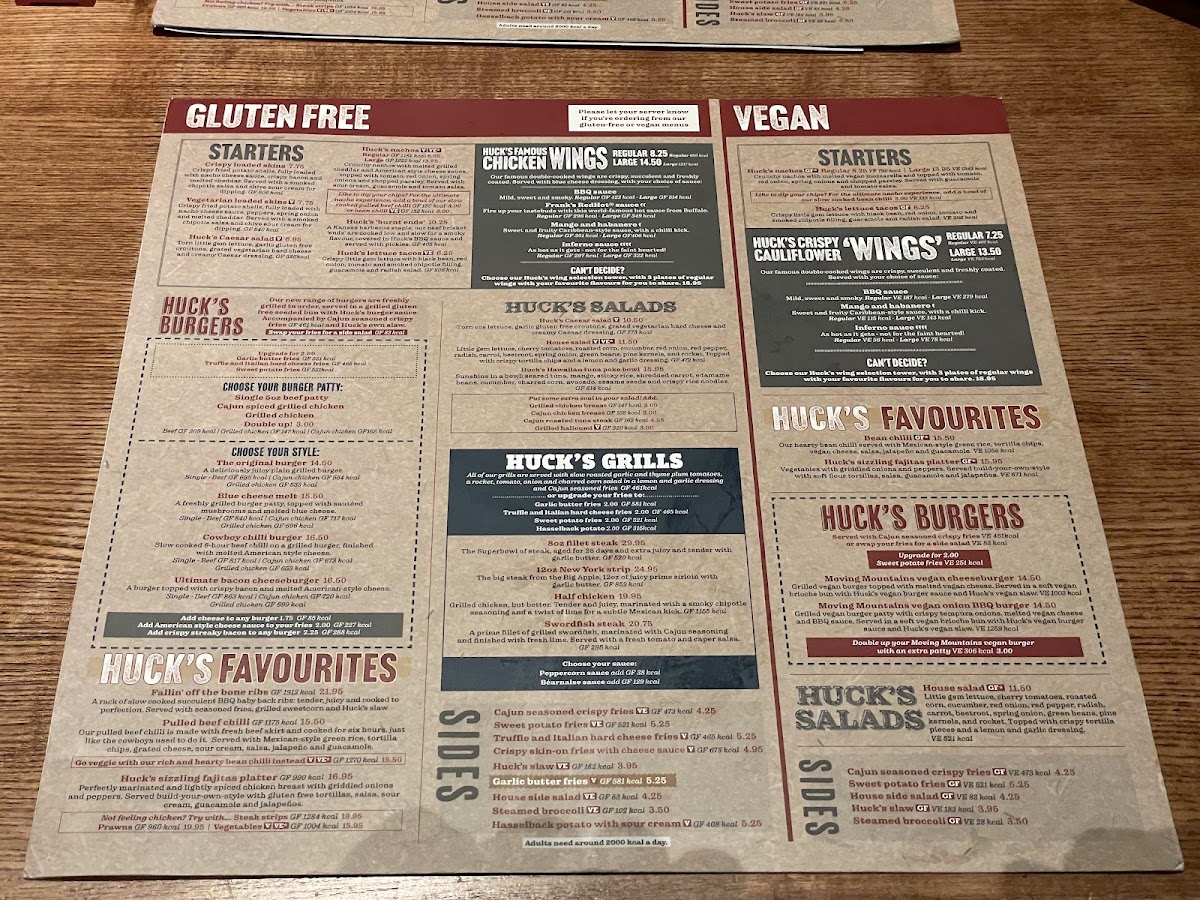 Huck's Menu